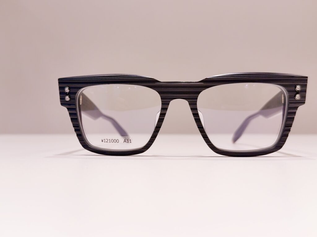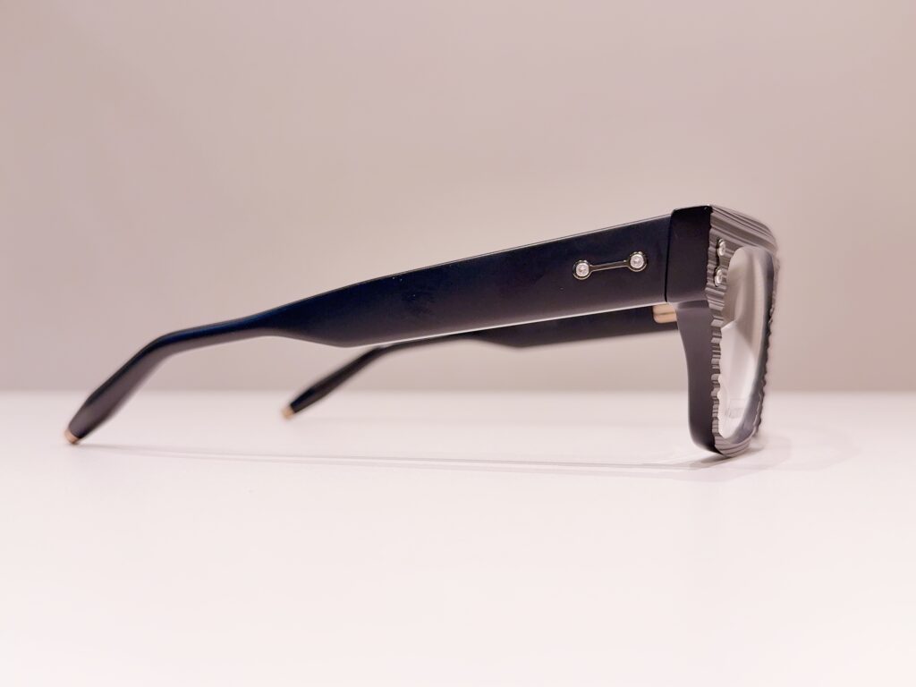 フロントは立体カットになっておりますが、テンプルはプレーンなマットブラックで「やりすぎ感」が無いようにバランスとっています。