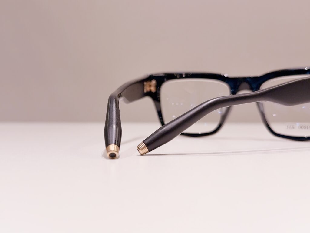 テンプルエンドは、AKONIでお馴染みの万年筆形状で、頭部に優しくフィットし、長時間の着用でもストレスを感じにくいように工夫がなされています。