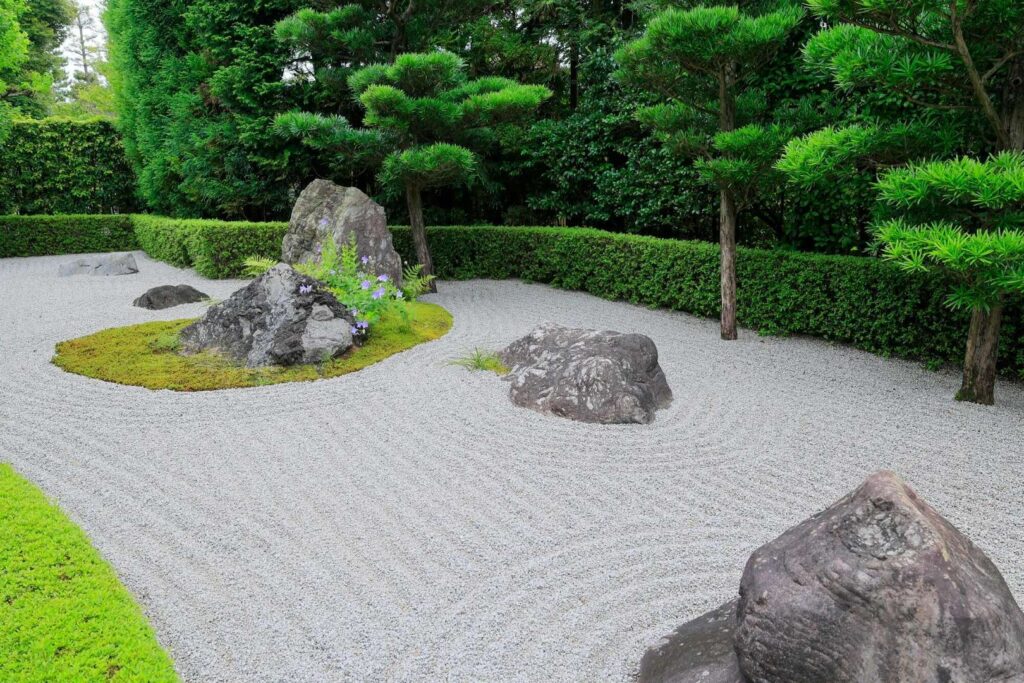 京都とかによくある庭の砂に波打ったような模様をつけるやつ。