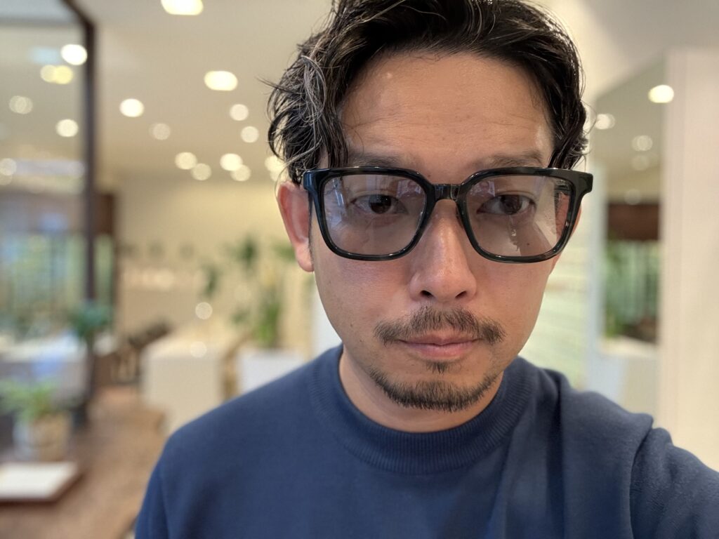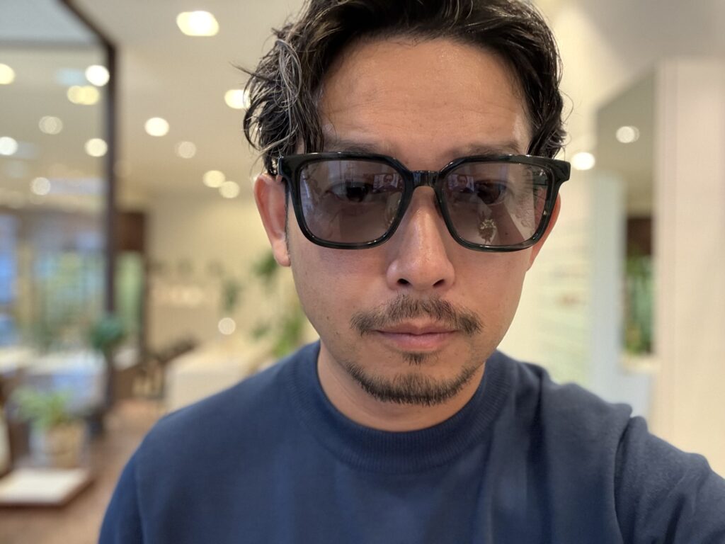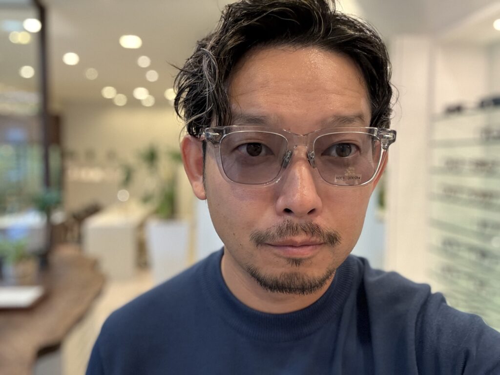 今回のクリアフレームは、真っ透明ではなくて、うっすらグレーが入っているのもミソです!