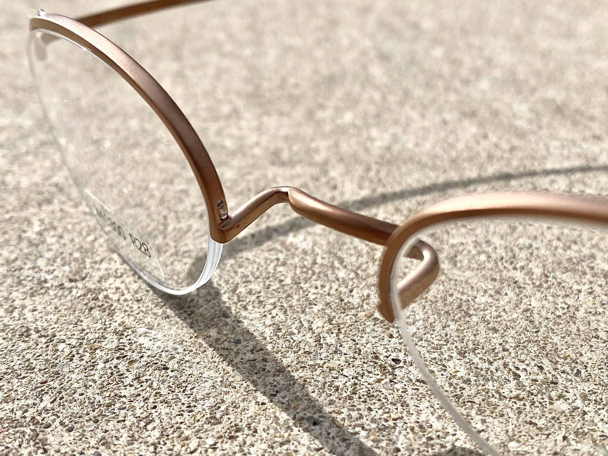 普通、メガネは各パーツをそれぞれ作ってそれらを溶接やネジ止めで組み立てるのですが、これには溶接もネジも一切なく、1本のチタンをプレスで曲げて作ってるので、メンテナンスすることが無いのです!!