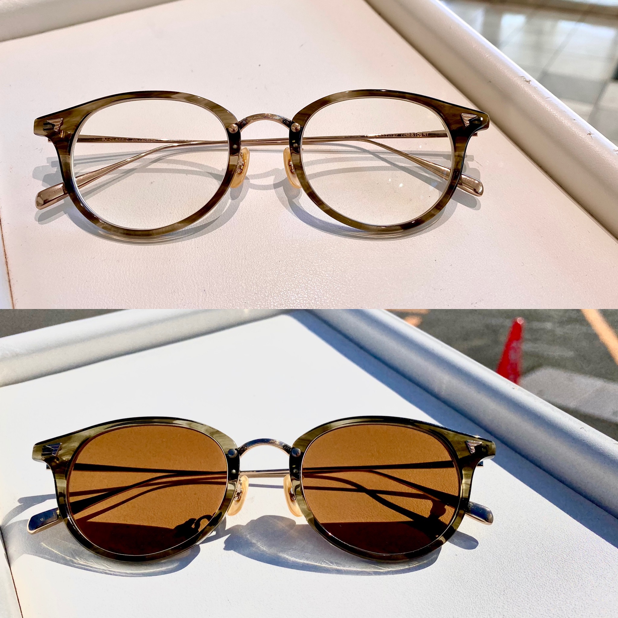 グリーン系フレームには何色のレンズが合わせればいいか、なかなか難しいと思いますが、このようにブラウン系は馴染みが良いのでオススメです^^