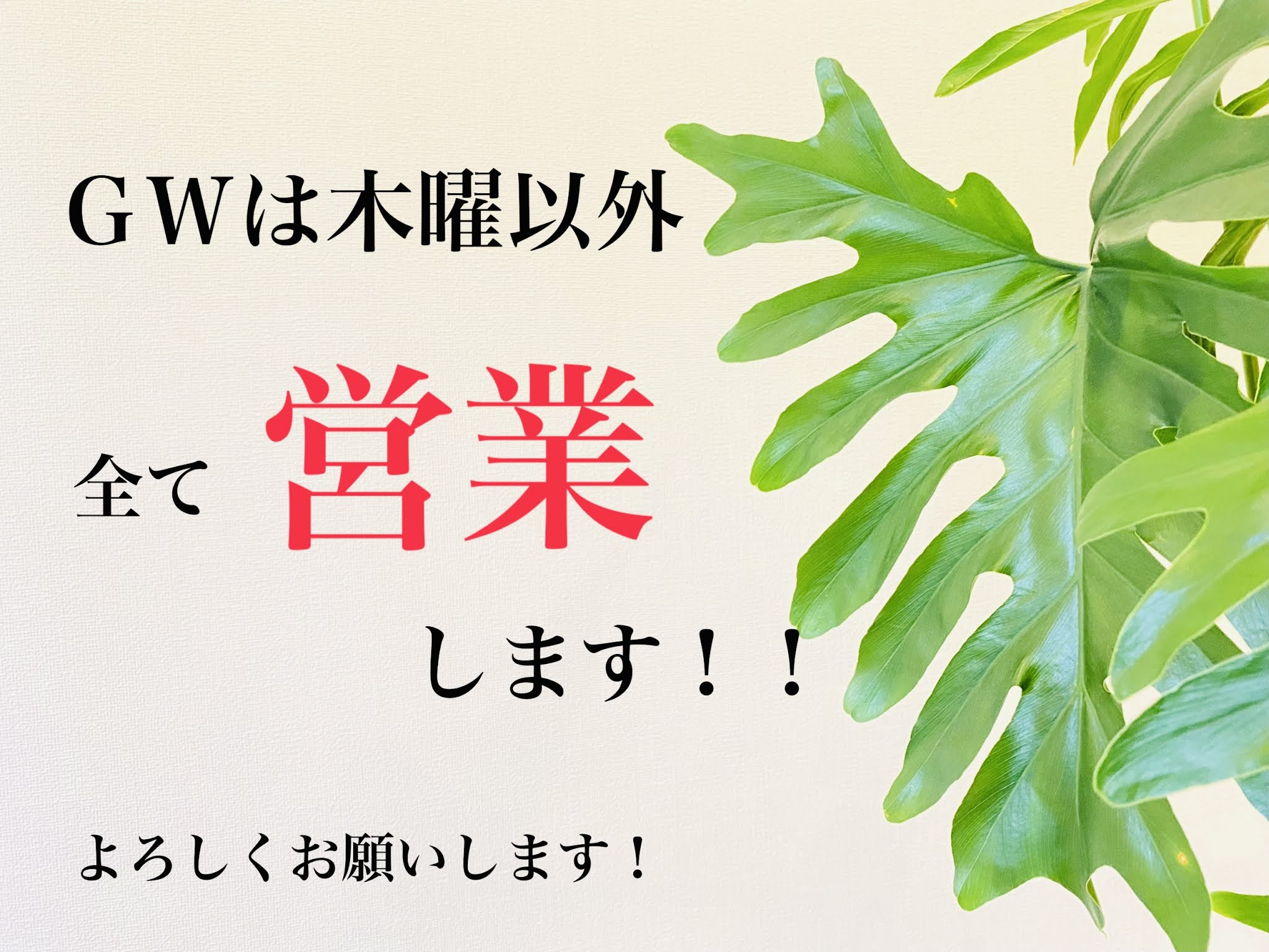 上記の通り4/29、5/6の木曜日はお休み頂きますが、それ以外は通常通りの営業致します!!!