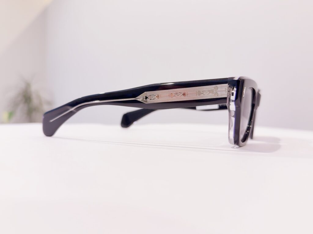 JACQUES MARIE MAGE特有の肉厚感を全面に押し出した力強いデザインは男性人気に集中するかと思いきや、意外にも女性がかけられる事もある守備範囲の広いモデル。